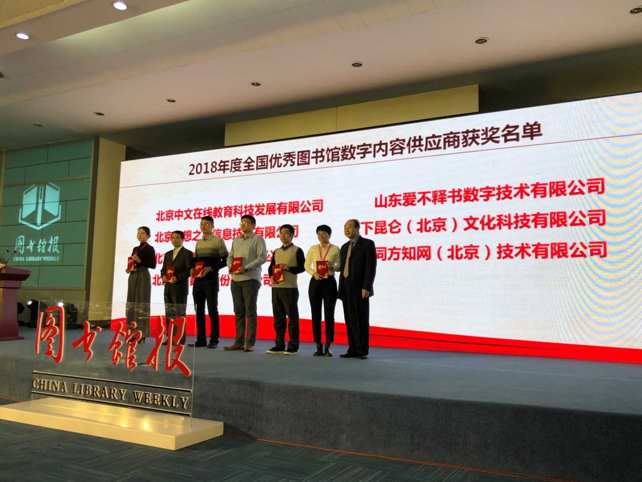 論壇期間進行了全國優(yōu)秀館配商頒獎典禮,這是館配行業(yè)共建共享的權(quán)威評選活動,也是業(yè)內(nèi)公認的評價館配企業(yè)的重要參考指標。在2018全國優(yōu)秀館配商評選活動中,北京方正阿帕比技術(shù)有限公司脫穎而出,獲得“2018全國優(yōu)秀圖書館數(shù)字內(nèi)容供應(yīng)商”殊榮。